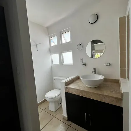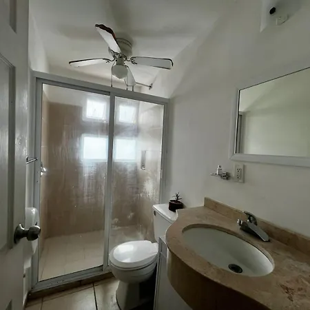 At Departamento En Planta Baja Con Alberca Apartment, a separate toilet and a shower are provided to improve your comfort. Hair dryers and towels can also be found.
